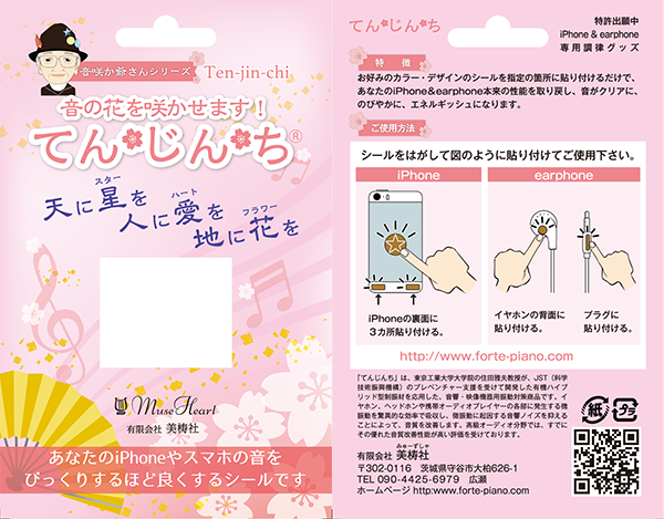 iPhoneやスマホやヘッドフォンの音が良くなるシール『てん🌸じん🌸ち』
